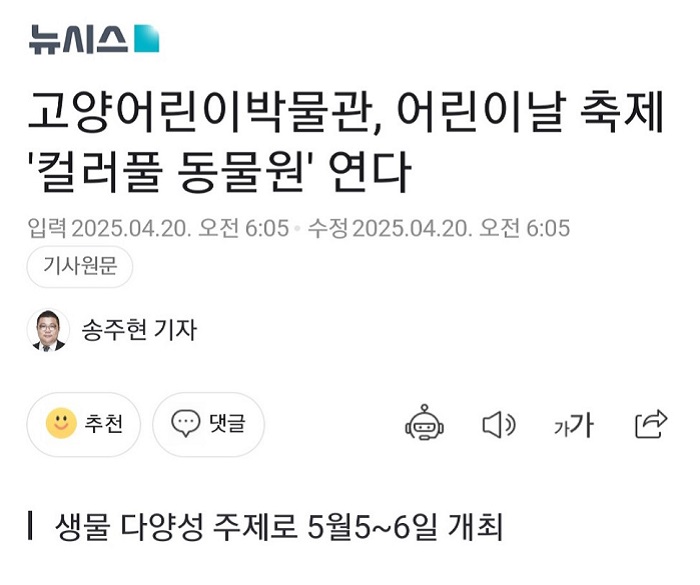 고양어린이박물관, 어린이날 축제 '컬러풀 동물원' 연다