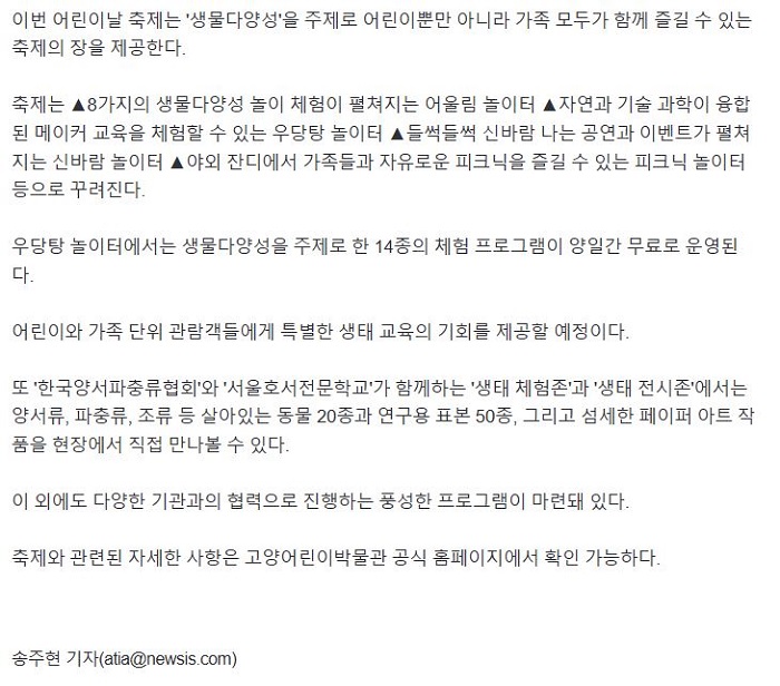 이 외에도 다양한 기관과의 협력으로 진행하는 풍성한 프로그램이 마련하였으니, 어린이와 가족 여러분의 많은 관심과 참여를 부탁드립니다.